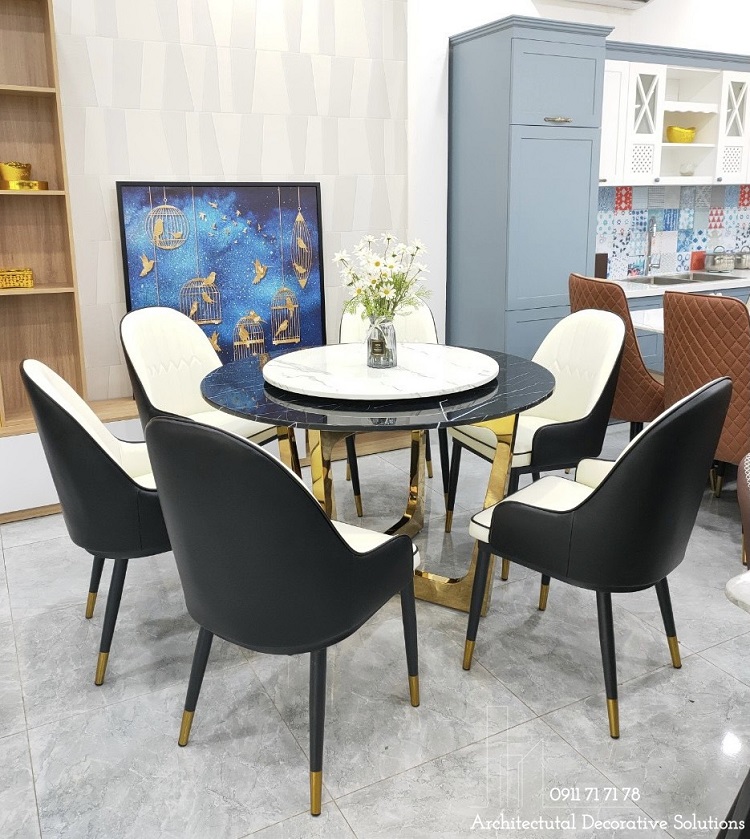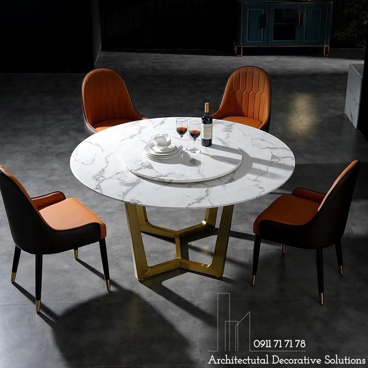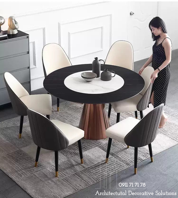 Bàn ăn xoay tròn phong cách hiện đại mang xu hướng sang trọng.