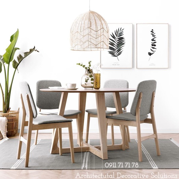 Bộ bàn ăn gỗ tròn đẹp đơn giản nhưng không kém phần tinh tế