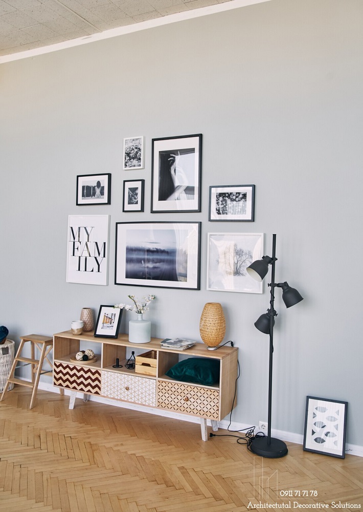 Tranh treo tường có hiệu quả tuyệt vời để tô điểm không gian. Vậy nhưng nếu không nắm chắc được tỷ lệ của bức tranh so với khoảng trống tường, căn phòng dễ rơi vào tình trạng mất cân đối. Khi treo các tác phẩm nghệ thuật trong nhà của bạn, hãy thử tìm hiểu trên internet về các phòng trưng bày nghệ thuật hiện đại và treo các tác phẩm lên sao cho chúng hoàn toàn ngang tầm mắt để đạt hiệu quả cao nhất. Nếu tường trống có độ rộng trên 2m, treo tranh bộ ba là thích hợp nhất. Nếu khoảng trống tường nhỏ hơn 2m, bạn có thể treo một bức tranh với chiều rộng khoảng 70cm. Treo tranh với tỷ lệ đúng cùng màu sắc hòa hợp với cả căn phòng, trông bức tường có sức sống hơn nhiều. Bạn cũng có thể treo kín tranh trên tường, tuy nhiên tông màu của tranh phải đồng đều và hòa hợp một cách hoàn hảo với cả không gian, để căn phòng không rơi vào tình trạng rối mắt.