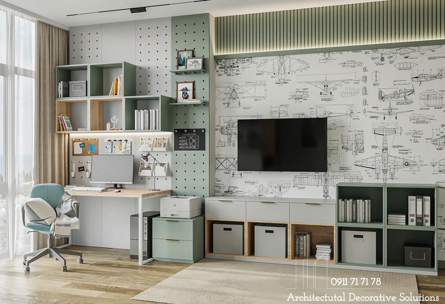Theo thời gian, những bộ đồ chơi tàu lửa hay lego ngày xưa của con sẽ được thay thế. Bằng những quyển sách, quần áo, giày dép và hàng tỉ món đồ khác. Bạn phải đảm bảo rằng con bạn luôn có đủ chỗ để chứa hết những thứ đồ đạc ấy. Nếu bạn không muốn phải than phiền về sự bừa bộn của con mỗi lần ghé ngang vào phòng. Những chiếc tủ phải được thiết kế thật khéo léo để không choán mất không gian phòng. Và đủ tiện nghi để con có thể sắp xếp và bài trí đồ đạc của nó theo ý thích.