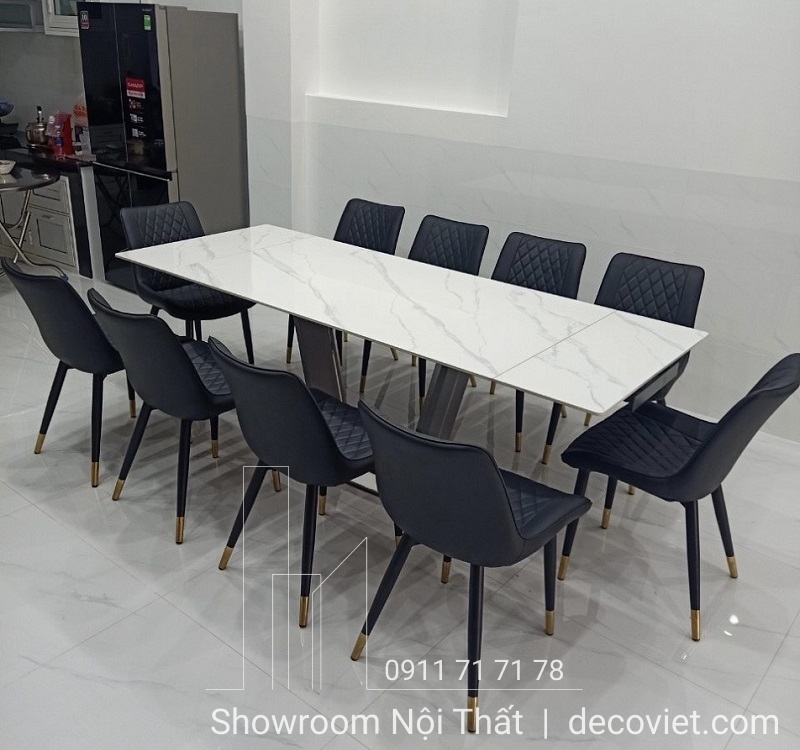 Bộ bàn ăn 10 người với thiết kế sang trọng cũng chất liệu cao cấp, sẽ mang đến những bữa ăn thoải mái, ngon miệng đồng thời giúp tô điểm không gian thêm tinh tế và đẳng cấp. Quý khách hàng còn có thể tùy chọn bộ bàn ăn 10 người theo nhiều kiểu dáng, chất liệu của bộ bàn ăn như: bàn ăn tròn xoay 10 ghế, bộ bàn ăn 10 ghế mặt đá, bàn ăn 10 ghế hiện đại, bàn ăn gỗ 10 ghế, bộ bàn ăn inox 10 ghế, bàn ăn thông minh 10 ghế,… Đây là những mẫu bàn ăn 10 ghế đẹp cao cấp, giá rẻ được ưu quý khách hàng ưa chuộng và bán chạy nhất năm nay tại DecoViet!