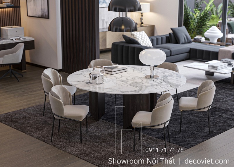 Bên cạnh các mẫu bàn ăn thông thường thì bàn ăn tròn mặt đá 12 ghế cũng là một sản phẩm đặc biệt giúp tạo dấu ấn nổi bật cho không gian bếp của gia đình bạn. Bộ bàn ăn tròn mang đến sự tròn đầy viên mãn, là một điểm nhấn mới lạ trong những căn bếp sang trọng ngày nay. Bàn ăn tròn với kiểu dáng đẹp thịnh hành nhất cùng chất lượng vượt trội sẽ giúp mang đến không khí ấm cúng và thoải mái cho những bữa cơm gia đình cũng như những bữa tiệc thân mật.