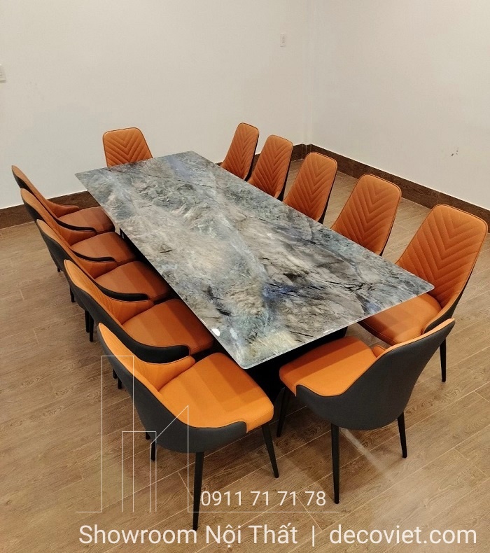 Mỗi không gian bếp ăn sẽ có diện tích, phong cách thiết kế khác nhau nên nhu cầu lựa chọn bàn ăn đẹp cũng có sự khác biệt. Để giúp tô điểm cho căn bếp lớn thêm sang trọng và đẳng cấp, mời bạn cùng tham khảo mẫu Bàn Ăn 12 Người Mặt Đá Nhập Khẩu 1684S dưới đây của DecoViet.