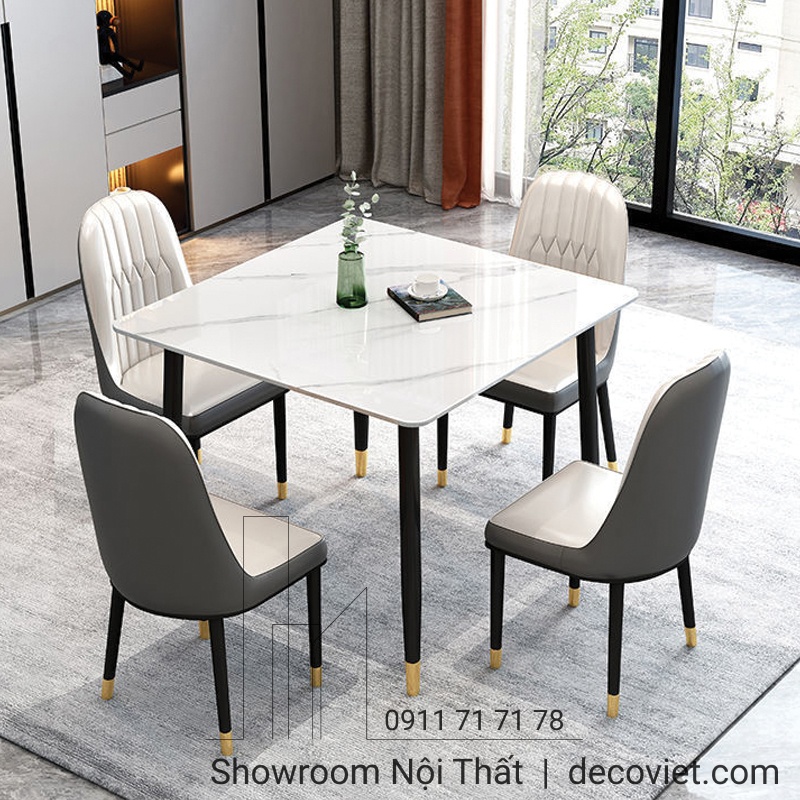Cấu tạo của bộ bàn ăn 4 ghế tuy nhỏ gọn nhưng với mặt đá sáng bóng cùng chân sắt sơn tĩnh điện, chân inox vững chắc là điểm cộng lớn nhất cho mẫu bàn ăn này. Bàn ăn mặt đá luôn là sản phẩm mang đến vẻ đẹp đẳng cấp và tinh tế cho không gian sống hiện đại. Chọn bàn ăn mặt đá 4 ghế giúp tô điểm cho căn bếp thêm phầm ấn tượng và đẳng cấp.