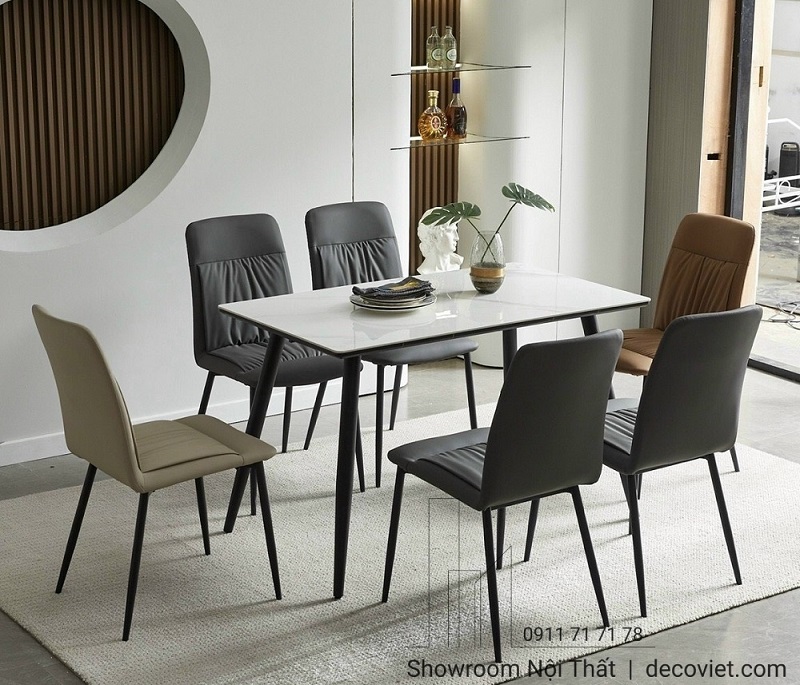 • Bàn ăn mặt đá ceramic chống trầy xước, chống thấm ố.