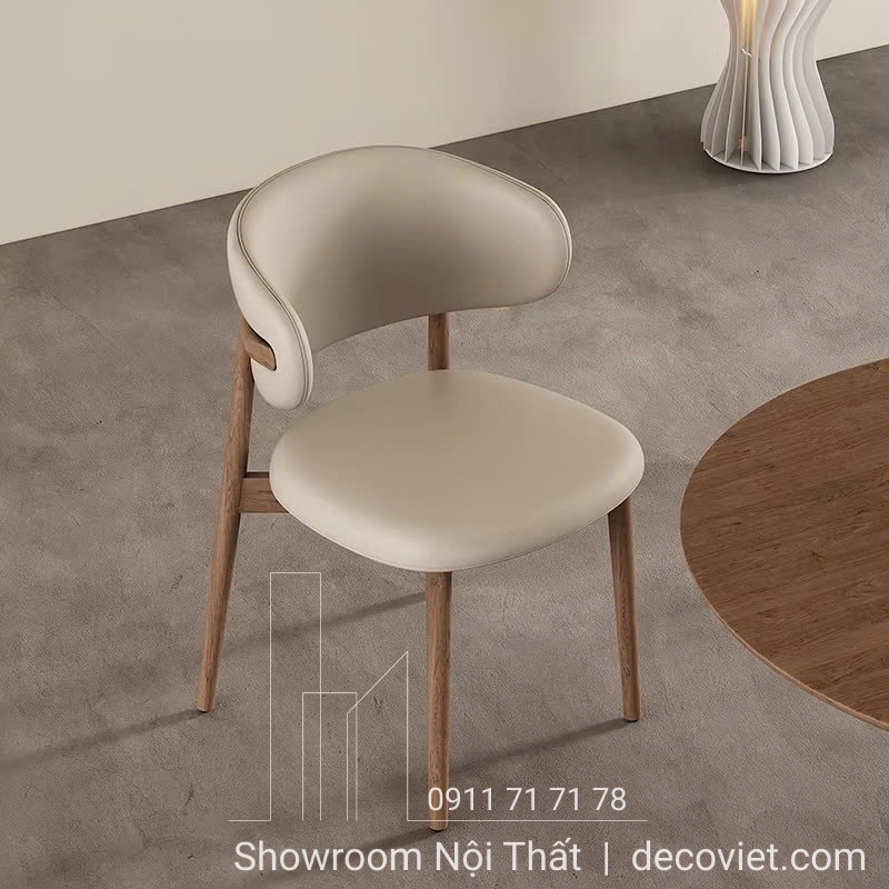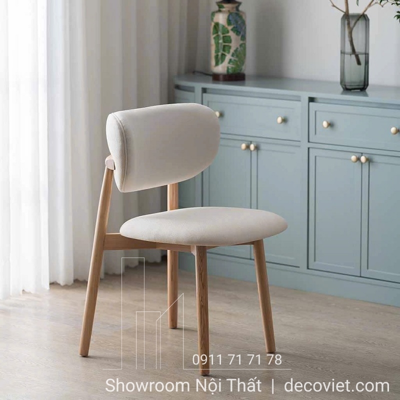 Ghế ăn gỗ được thiết kế với đường com mềm mại ôm trọn cơ thể người ngồi. Phần tựa lưng và mặt ngồi bọc vải cùng nệm mút dày dặn êm ái, mang lại cảm giác thoải mái cho người ngồi dùng bữa và trò chuyện trong thời gian dài.