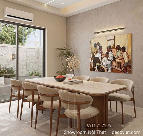 Bộ bàn ghế ăn với kiểu dáng hình khối đơn giản, mang hơi thở phong cách Bắc Âu chính là gợi ý cho những gia chủ yêu thích nét tự nhiên, đơn giản này. Sự cân bằng giữa 3 yếu tố mộc mạc giản dị, hiện đại tối giản, tính ứng dụng cao đã giúp không gian dùng bữa trở nên ấm cúng, gần gũi và bình yên hơn.