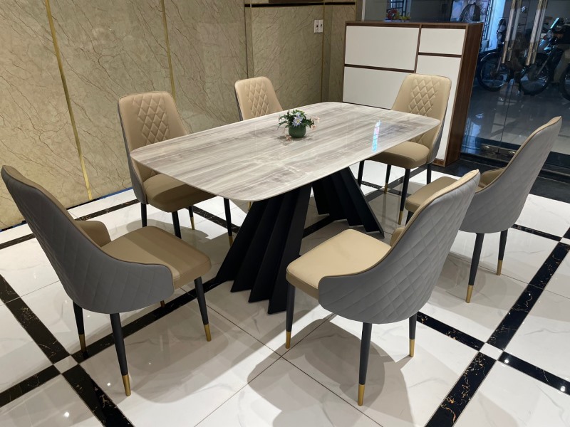 Đây cũng là một trong những sản phẩm luôn nhận được phản hồi tốt nhất của khách hàng sau khi sử dụng. Bộ bàn ăn với chân sắt, mặt đá nhập, và 6 ghế nệm cao cấp chắc chắn sẽ làm quý khách hài lòng.