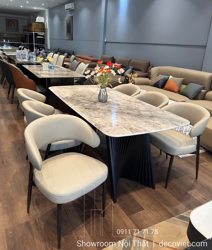 Không chỉ là nơi dùng bữa, bàn ăn mặt đá 6 ghế dài 1.8m còn là điểm nhấn trang trí, tôn lên gu thẩm mỹ của gia chủ. Kiểu dáng hiện đại, tiện nghi và đẳng cấp khiến sản phẩm còn được ưa chuộng trong các thiết kế nội thất sang trọng, luxury đẳng cấp.