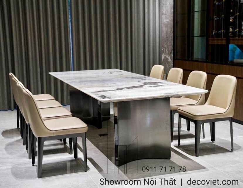 Sở hữu mẫu bàn ăn mặt đá 8 ghế giá rẻ tại Nội thất Nhà Decor chắc chắn bạn sẽ có không gian nhà bếp cực đẹp và cực sang trọng theo xu hướng nội thất mới nhất. Đồng thời những bộ bàn ăn mặt đá 8 ghế nhập khẩu của chúng tôi cũng luôn đi đầu về chất lượng, hạn chế những hư hỏng, nứt gãy sẽ giúp đảm bảo an toàn cho người dùng sử dụng, bạn hoàn toàn có thể yên tâm về độ bền, tuổi thọ mà những mẫu bàn ghế ăn này mang lại.