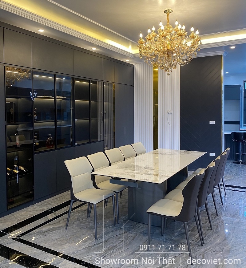Không chỉ góp phần mang đến những bữa ăn ngon, sự xuất hiện của bộ bàn ăn mặt đá 8 ghế trong căn bếp còn giúp việc tiếp đón người thân, khách quý trở nên lịch sự hơn rất nhiều. Gia chủ vẫn hoàn toàn có thể tự tin tiếp đón khách với chiếc bàn ăn 8 người rộng rãi, tiện lợi, đồng thời cũng thể hiện được thành ý của gia chủ khi có khách ghé thăm.