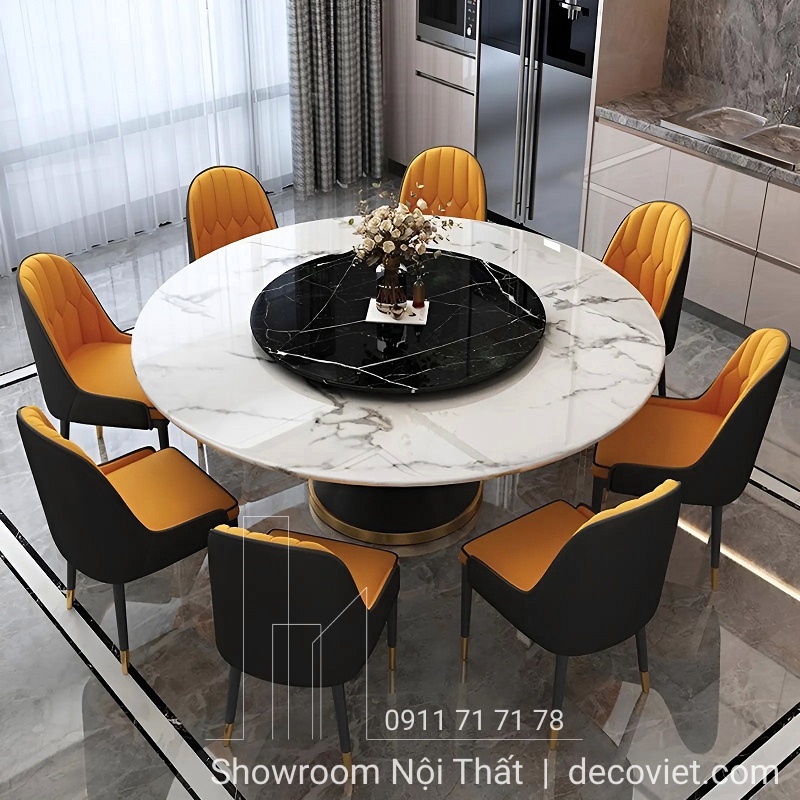 Bàn ăn tròn ăn cơm đẹp là một sản phẩm nội thất rất được ưa chuộng bởi vẻ đẹp, ý nghĩa và công năng đặc biệt của chúng. Mặt bàn của bộ bàn ăn tròn 8 ghế được làm bằng đá nhân tạo, đá tự nhiên với những đường vân “có một không hai” đã tạo nên một sản phẩm tinh tế, độ bền vượt trội. Mẫu bàn tròn đẹp có thể thổi hồn vào không gian sống, giúp bạn và gia đình có những bữa cơm quây quần ấm cúng.