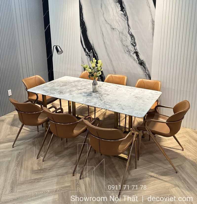 Bàn Ăn 8 Ghế Chân Inox Mặt Đá 2725S
