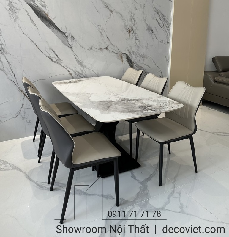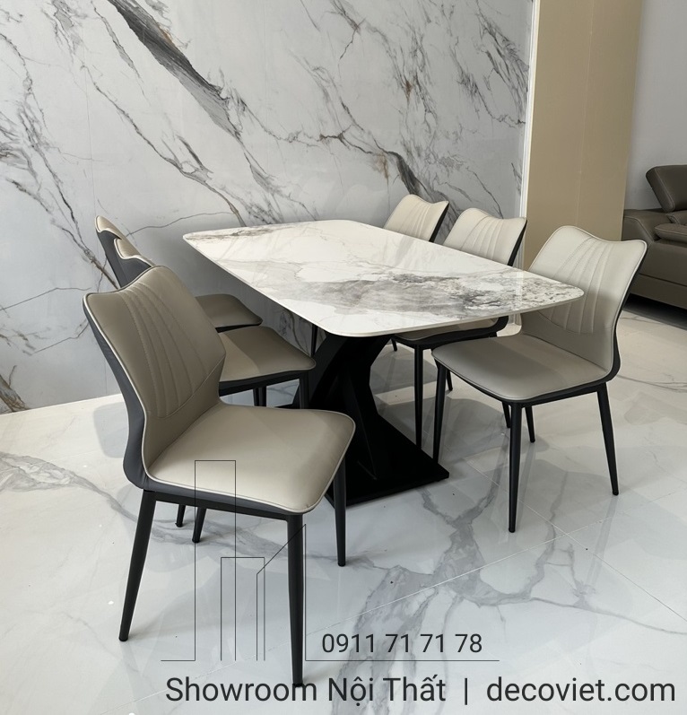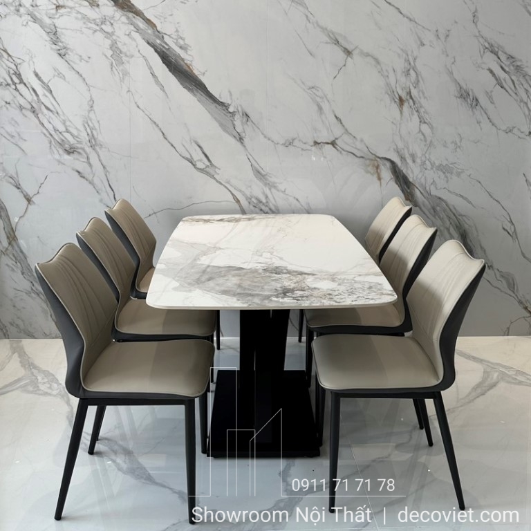 Bàn Ăn Cao Cấp 6 Ghế 1431S - Bộ Bàn Ăn 6 Ghế Mặt Đá Sang Trọng!