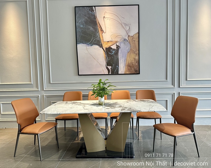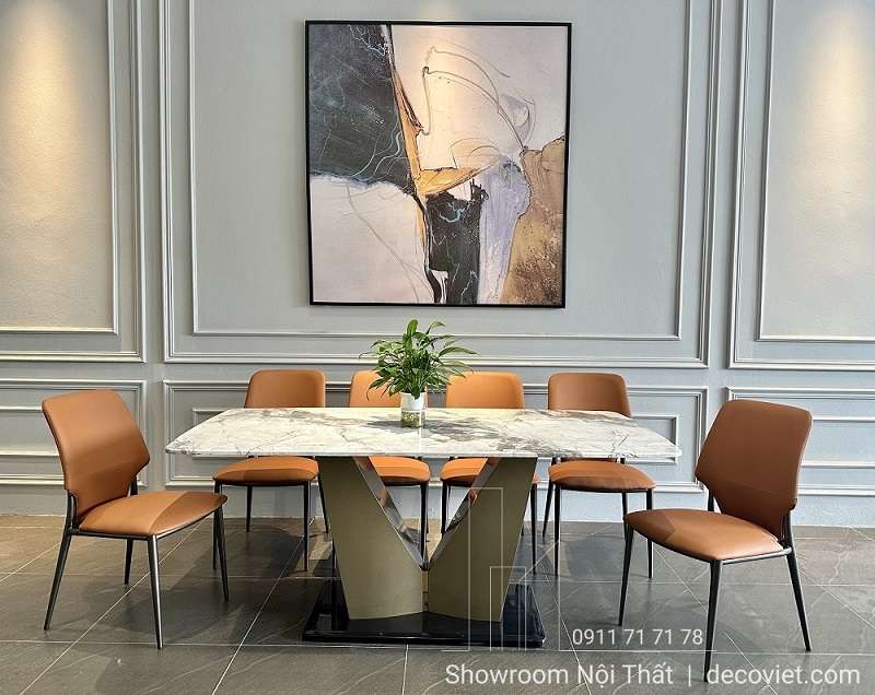 Bàn ăn mặt đá tại DecoViet là mẫu thiết kế cuốn hút người nhìn bởi vẻ đẹp sang trọng, tinh tế và chắc chắn. Phần chân gỗ đi cùng bàn ăn mặt đá hiện đại bên trên tạo nên một sự kết hợp vô cùng hoàn hảo.