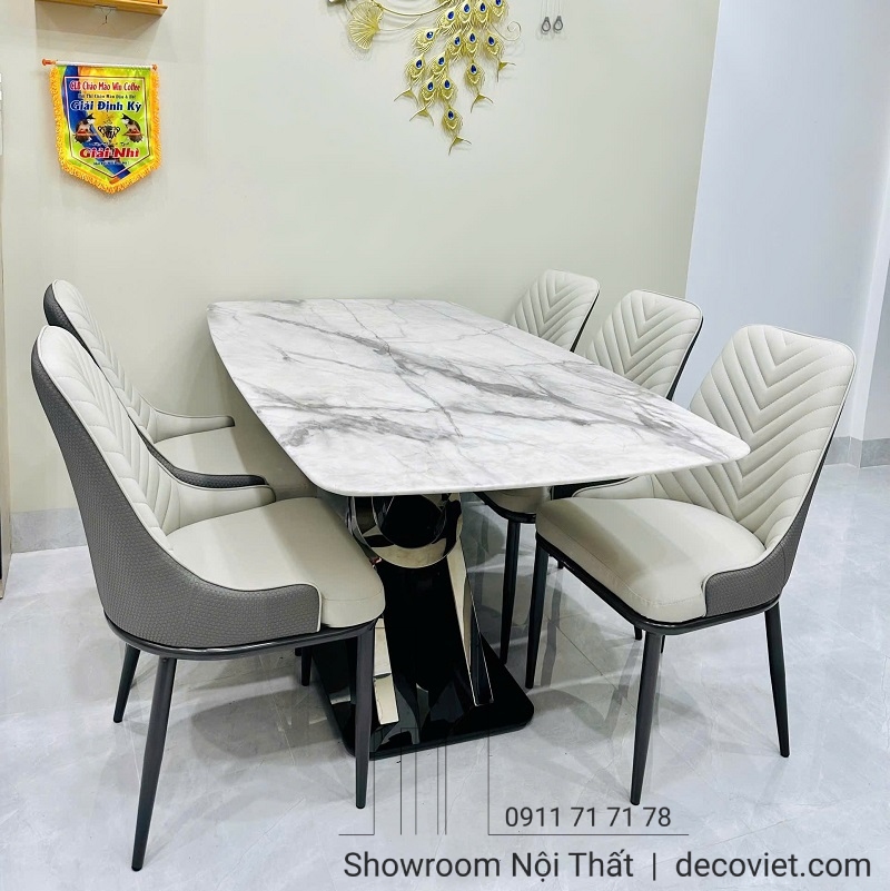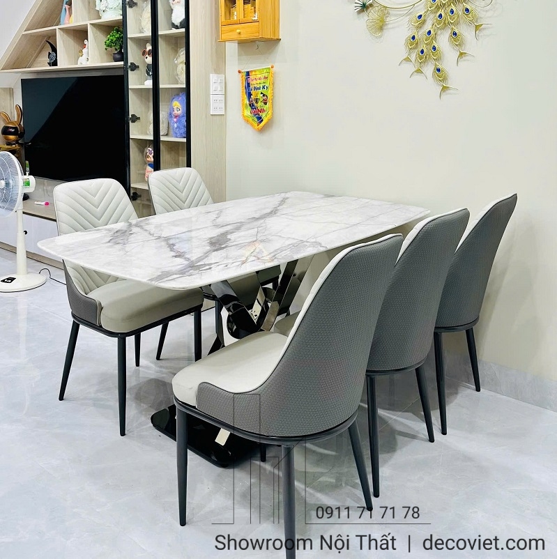 Bàn Ăn Chân Inox Mặt Đá 4 Ghế 2439S | Bộ Bàn Ghế Ăn Đẹp Hiện Đại!