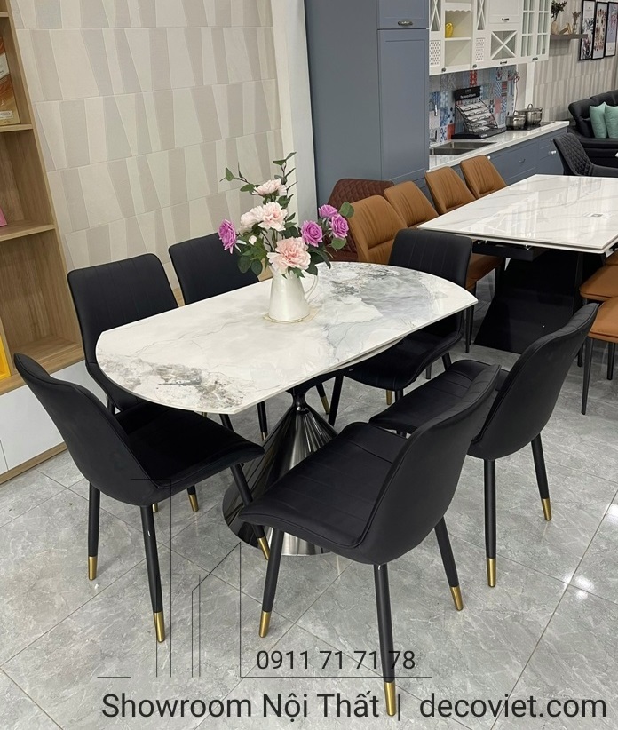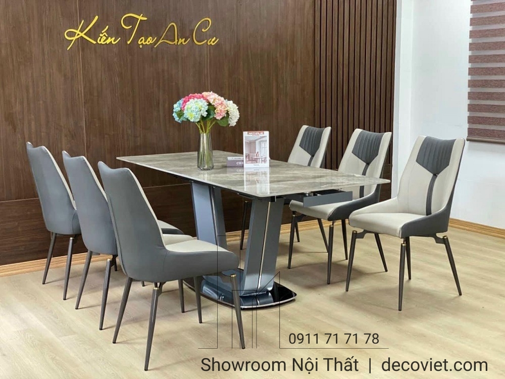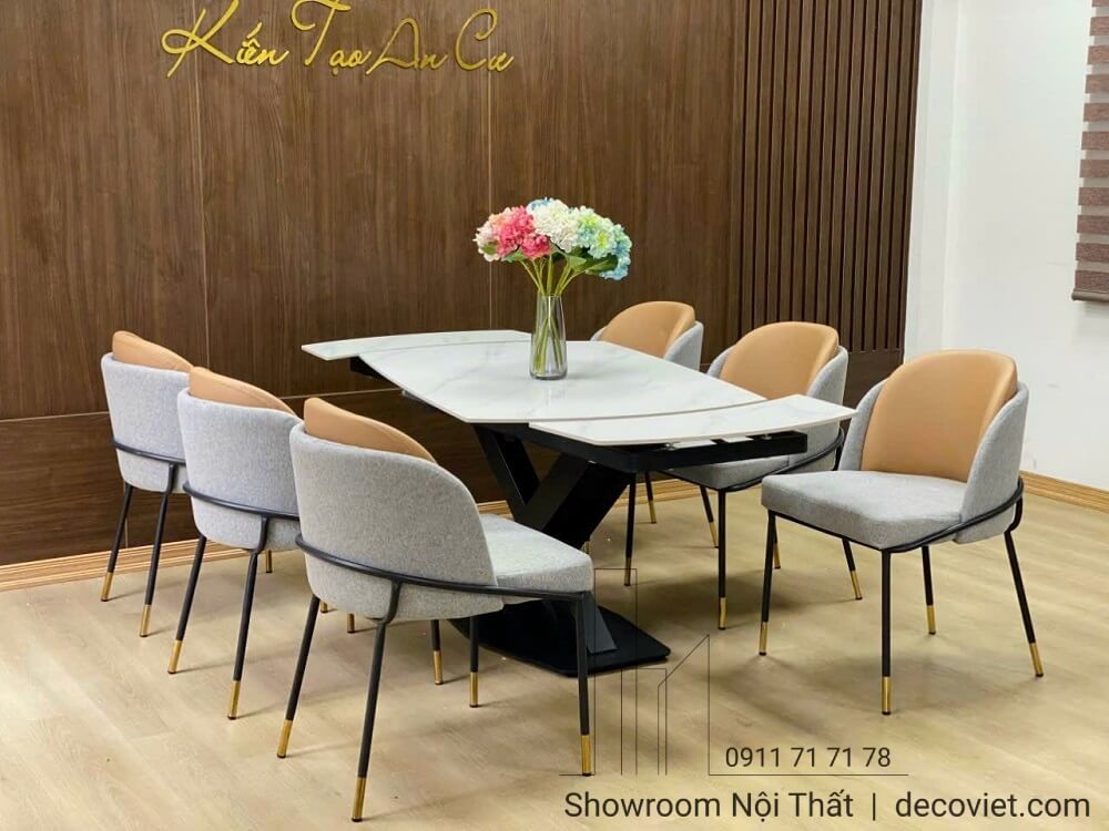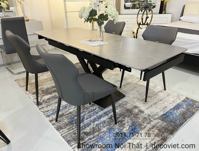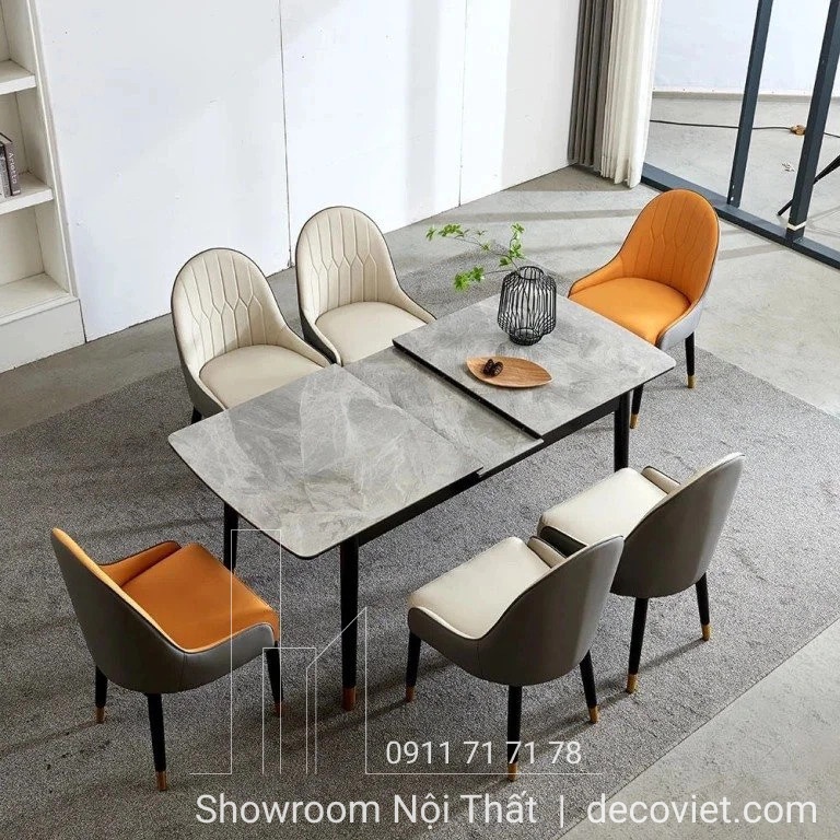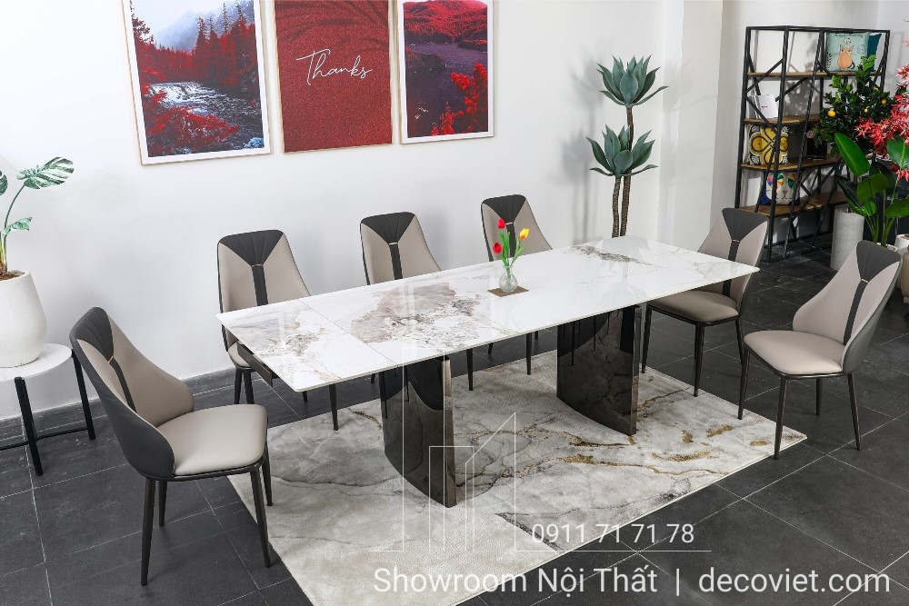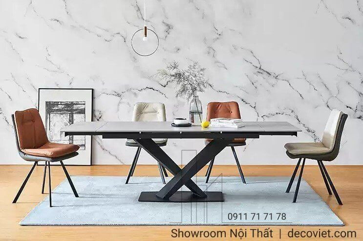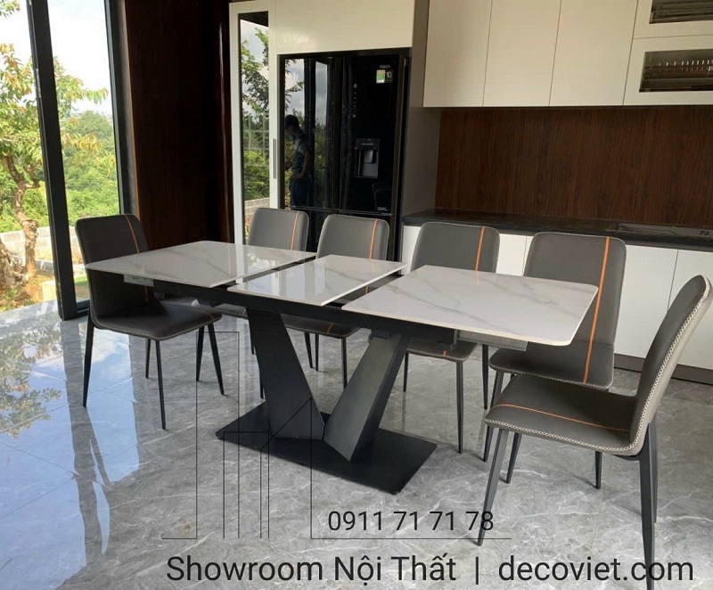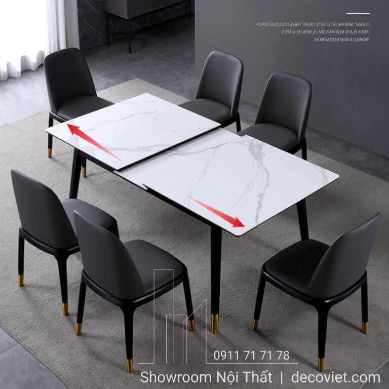 Bàn ăn kéo dài mặt đá ceramic trắng, đen sang trọng cho phòng ăn hiện đại