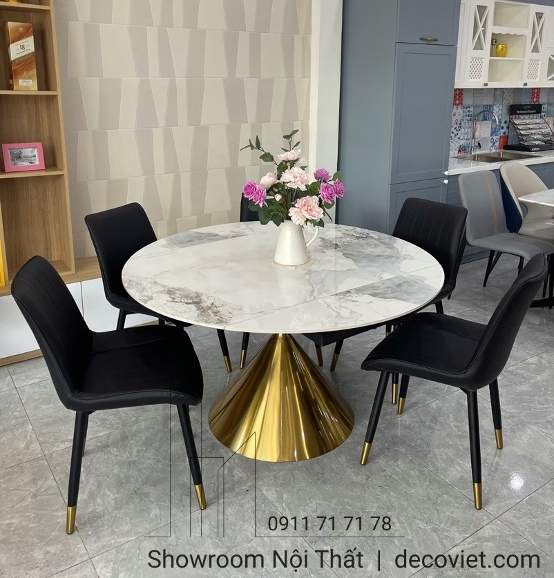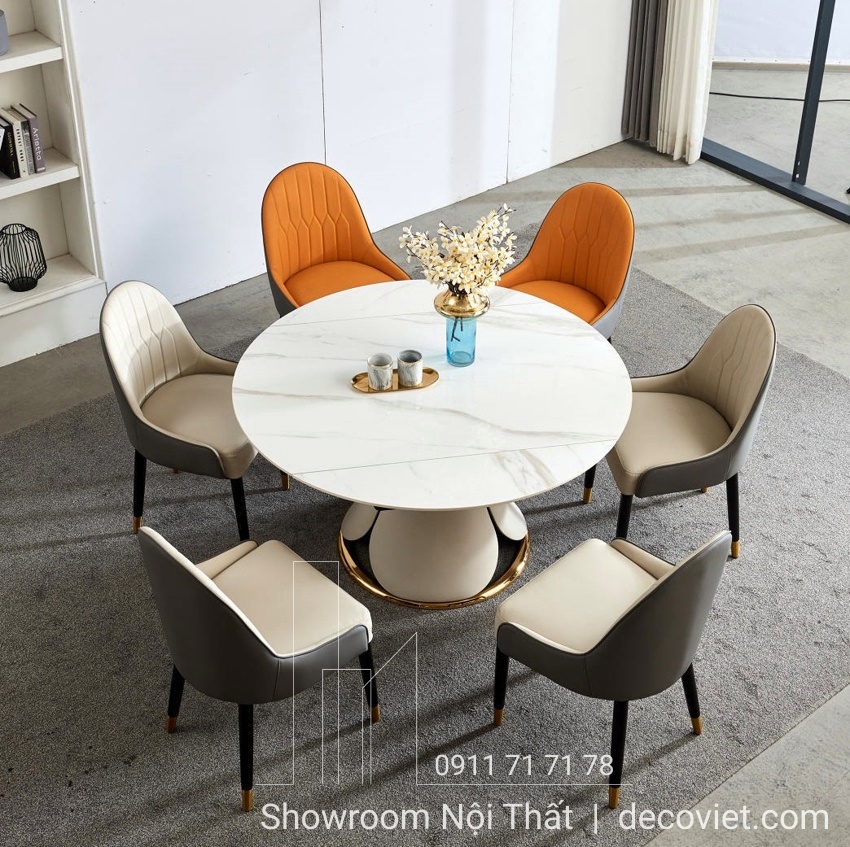 Mẫu bàn ăn tròn thông minh mặt đá có thể xoay thành mặt bàn chữ nhật