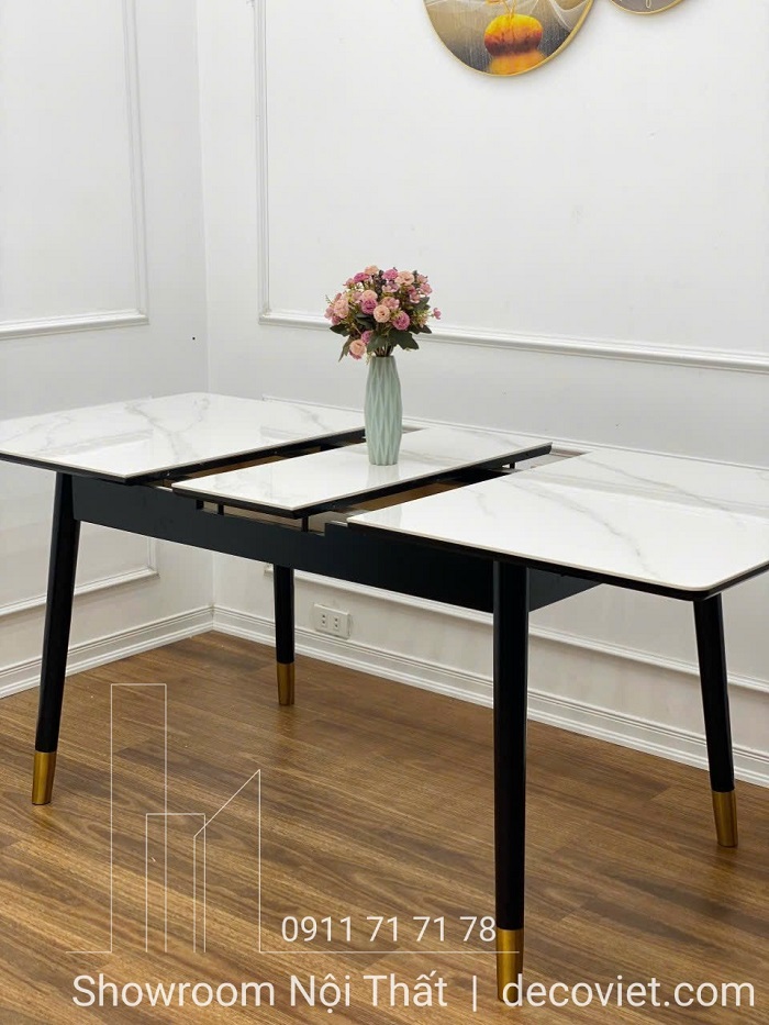 Bộ bàn ăn thông minh sử dụng 2 chất liệu được ưu chuộng hiện nay là chân gỗ và mặt đá cao cấp. Phần chân bàn ăn kéo dài nhập khẩu bằng gỗ sơn chắc chắn và thiết kế đơn giản đẹp mắt, cùng với mặt đá bằng chất liệu đá ceramic sang trọng tinh tế chắc chắn sẽ làm hài lòng khách hàng.