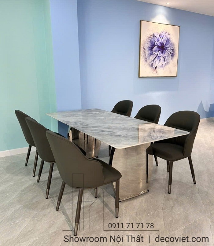 "Bộ Bàn Ăn Chân Inox Mặt Đá Cẩm Thạch Nhập Khẩu"