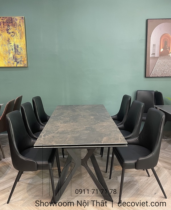 ▶ Bàn ăn chân sắt sơn tĩnh điện thiết kế hiện đại cùng với mặt đá ceramic sáng bóng giúp không gian bếp nhà bạn thêm sang trọng, tiện nghi.