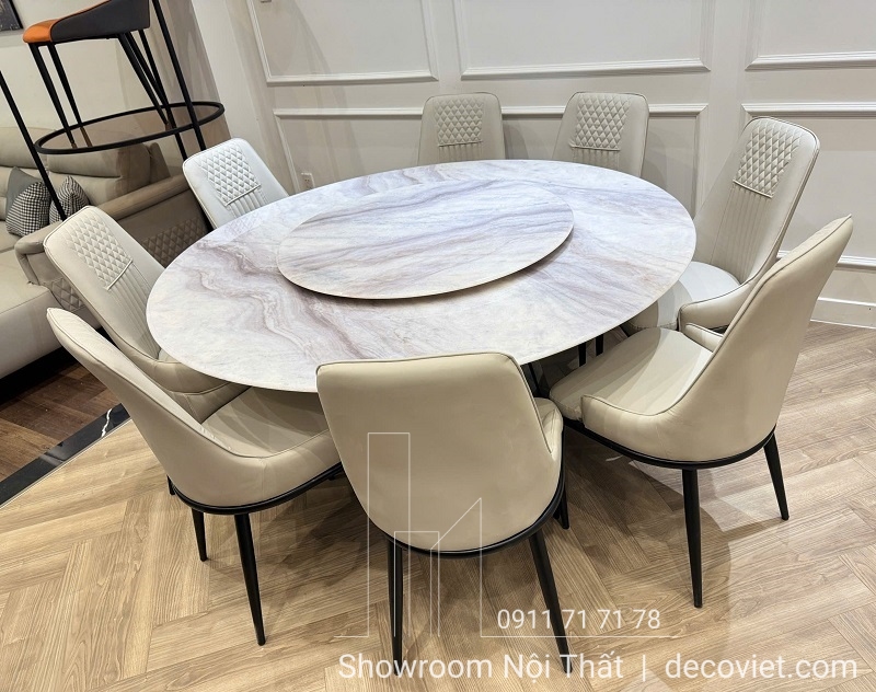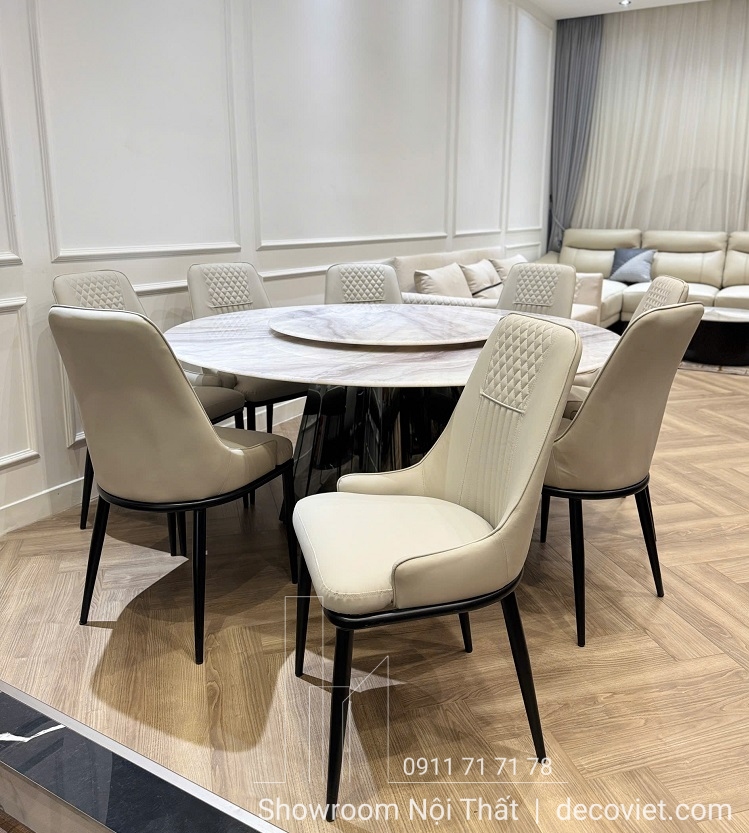 Bộ bàn ăn tròn xoay mặt đá 8-10 ghế là sự kết hợp hoàn hảo giữa vẻ đẹp hiện đại và sự tinh tế, mang đến không gian bếp một nét sang trọng và đẳng cấp. Thiết kế Bàn Ăn Tròn Mặt Đá 1m6 Hiện Đại 2427S với mâm xoay 360 độ linh hoạt, giúp bạn dễ dàng chia sẻ món ăn, tạo sự tiện lợi và ấm cúng cho các bữa ăn gia đình hay những bữa tiệc thân mật. Mặt đá cẩm thạch không chỉ tăng thêm vẻ đẹp tinh xảo mà còn dễ dàng vệ sinh và bảo quản. Bộ bàn ăn tròn 8-10 ghế này không chỉ là một món đồ nội thất, mà còn là một tác phẩm nghệ thuật, trở thành điểm nhấn tuyệt vời cho mọi không gian. Với sự hoàn hảo trong từng chi tiết, bộ bàn ăn này chắc chắn sẽ làm hài lòng bất kỳ ai yêu thích sự sang trọng và hiện đại.