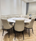 Đi cùng bộ Bàn Ăn Tròn Mặt Đá 1m6 Hiện Đại 2427S là những chiếc ghế bọc da cao cấp, được thiết kế theo phong cách hiện đại, hợp xu hướng. Những chiếc ghế này không chỉ mang lại cảm giác thoải mái mà còn giữ được vẻ đẹp thanh lịch, không sợ lỗi thời theo thời gian. Với thiết kế tinh tế, ghế ăn bọc da dễ dàng hòa hợp với nhiều phong cách nội thất khác nhau, vừa sang trọng vừa luôn tươi mới.