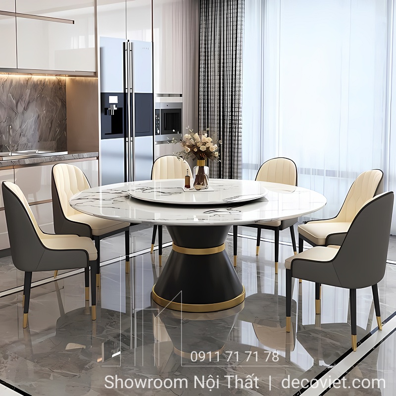 Bàn Ăn Tròn Mặt Đá Nhập Khẩu 1730S | Bàn Ăn Tròn Xoay 8 Người Đẹp!