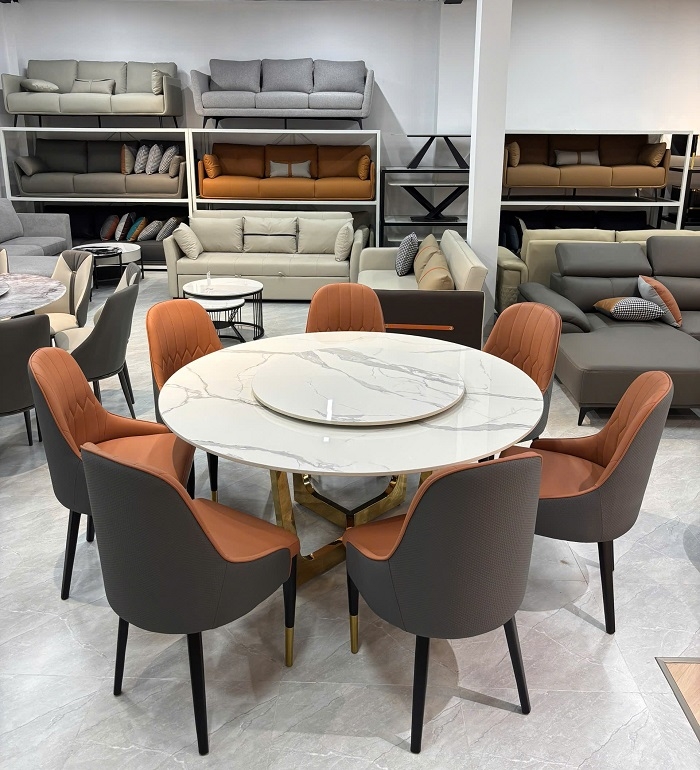 Bàn Ăn Tròn Mặt Đá 8 Ghế – Điểm Nhấn Tinh Tế Và Ấm Cúng Cho Không Gian!