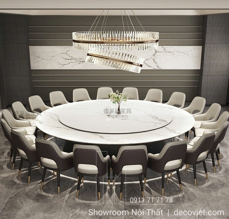 Nội thất DecoViet cam kết mang đến cho khách hàng những sản phẩm bàn ăn tròn 15-20 ghế chất lượng cao, được lựa chọn kỹ lưỡng từ những chất liệu tốt nhất. Bàn Ăn Tròn Xoay Lớn 20 Ghế 2144S không chỉ là một món đồ tiện ích, mà còn là một tác phẩm nghệ thuật, giúp tô điểm cho không gian sống của bạn thêm phần sang trọng và hiện đại. Hãy liên hệ ngay với DecoViet, chúng tôi sẽ tận tâm hỗ trợ bạn, giúp bạn chọn lựa được bộ bàn ăn tròn to 15-20 ghế phù hợp nhất với nhu cầu và không gian sống của bạn.