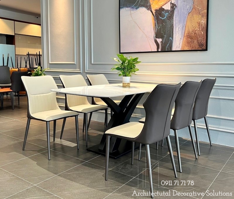 Bàn ăn mặt đá tại DecoViet là mẫu thiết kế cuốn hút người nhìn bởi vẻ đẹp sang trọng, tinh tế và chắc chắn. Phần chân sắt sơn tĩnh điện đi cùng bàn ăn mặt đá hiện đại bên trên tạo nên một sự kết hợp vô cùng hoàn hảo.