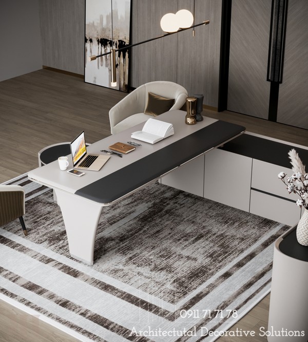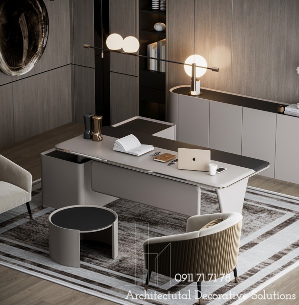 Bàn làm việc từ thương hiệu DecoViet sẽ tạo nên một không gian làm việc năng động, chuyên nghiệp, giúp tinh thần làm việc của các nhân viên trở nên tích cực, luôn hoàn thành công việc đúng tiến độ, mang đến lợi nhuận cao cho công ty. Tại DecoViet chúng tôi cung cấp nhiều mẫu bàn giám đốc, bàn nhân viên, bàn trưởng phòng hiện đại, cao cấp, mẫu mã đa dạng. Thiết kế bàn sang trọng, đẳng cấp, tôn vinh vẻ đẹp văn phòng.