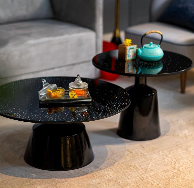 Bàn khảm trai sơn mài được biết đến là mẫu bàn sofa cho phòng khách nhưng mặt bàn đặc biệt được làm thủ công với những mảnh trai tự nhiên ghép vào nhau. Những mảnh trai được chọn lọc rất kỹ càng và được xử lý qua nhiều công đoạn như cắt, mài, đánh bóng, ghép nối mới cho ra được sản phẩm mặt bàn lấp lánh, thu hút ánh nhìn. Sự kết hợp của bàn trà khảm trai hiện đại với ghế sofa phòng khách chắc chắn sẽ tạo nên một một điểm nhấn hoàn toàn nổi bật.