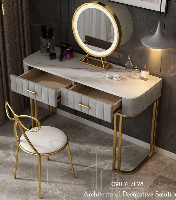 DecoViet chuyên thiết kế và sản xuất bàn phấn (bàn trang điểm) giá rẻ tại TPHCM. Thiết kế sang trọng, hiện đại phù hợp với mọi không gian phòng ngủ. Ngoài tính năng làm đẹp cho các chị em, bàn phấn còn là vật dụng trang trí trong phòng ngủ của mọi gia đình. Với sự kết hợp hài hòa về mẫu mã, DecoViet tự hào mang đến cho các bạn không gian phòng ngủ hoàn hảo nhất.