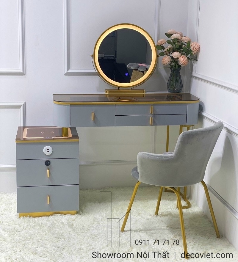 DecoViet chuyên thiết kế và sản xuất bàn phấn (bàn trang điểm) giá rẻ tại TPHCM. Thiết kế sang trọng, hiện đại phù hợp với mọi không gian phòng ngủ. Ngoài tính năng làm đẹp cho các chị em, bàn phấn còn là vật dụng trang trí trong phòng ngủ của mọi gia đình. Với sự kết hợp hài hòa về mẫu mã, DecoViet tự hào mang đến cho các bạn không gian phòng ngủ hoàn hảo nhất.