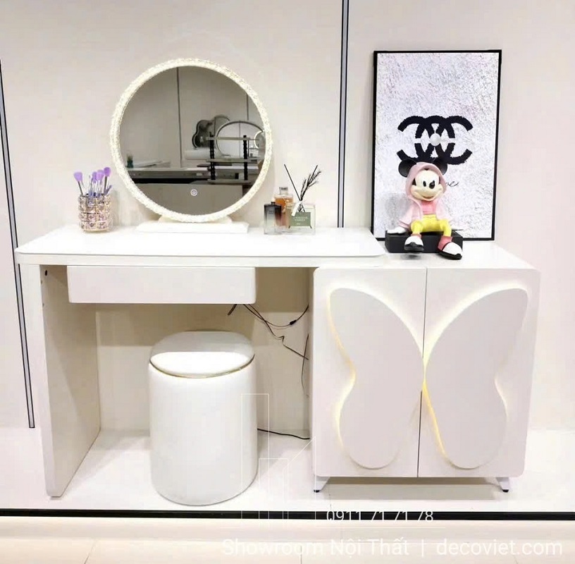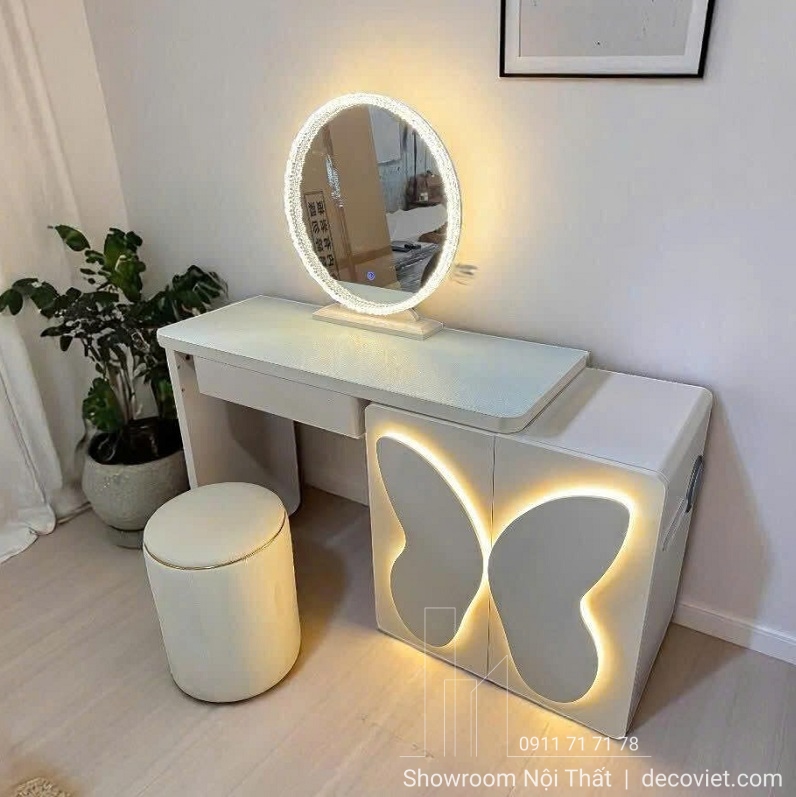 Bàn Trang Điểm Có Đèn Led 152S mang đến cho nàng một không gian làm đẹp thật sang trọng và tiện ích. Với thiết kế trẻ trung, điểm nhấn cánh bướm kết hợp ánh sáng LED độc đáo, chiếc bàn không chỉ giúp make-up chuẩn sắc nét mà còn trở thành món nội thất cuốn hút đặc biệt trong phòng ngủ.