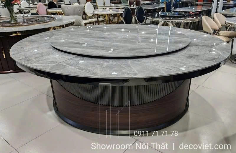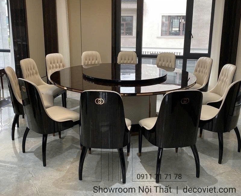Những bàn ăn tròn 12 ghế là lựa chọn lý tưởng cho các buổi tiệc gia đình, tiệc chiêu đãi trong nhà hàng, khách sạn. Không gian trở nên trang trọng, tinh tế và thuận tiện cho khách hàng.