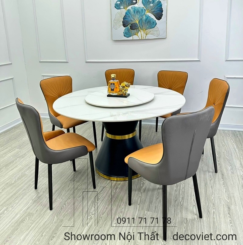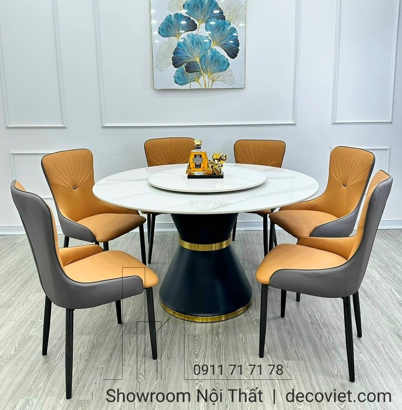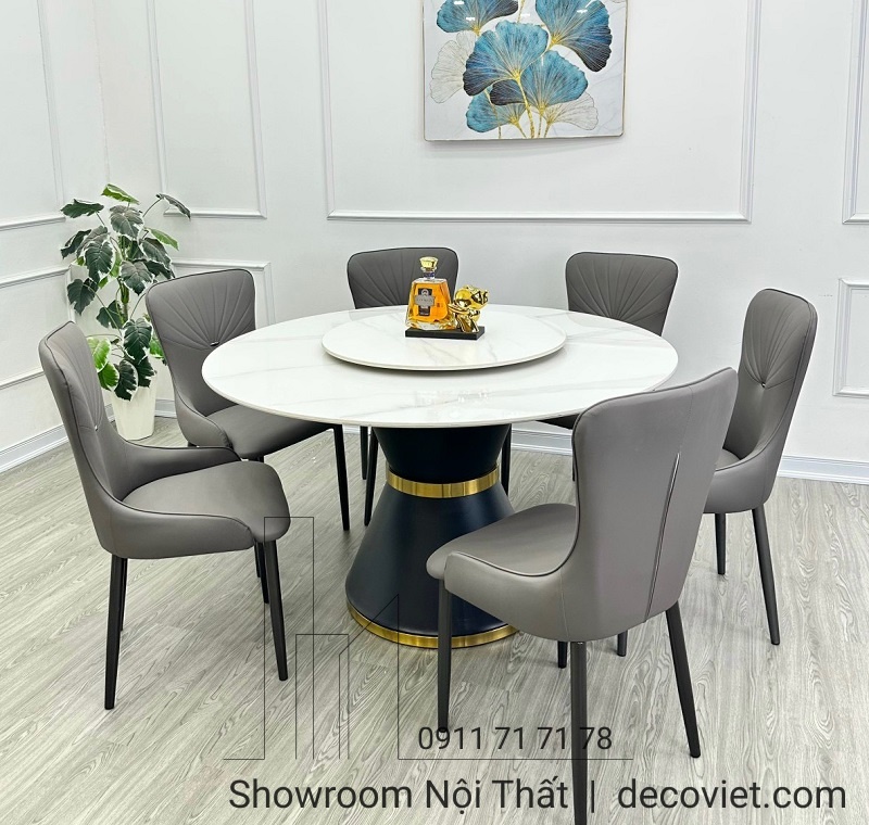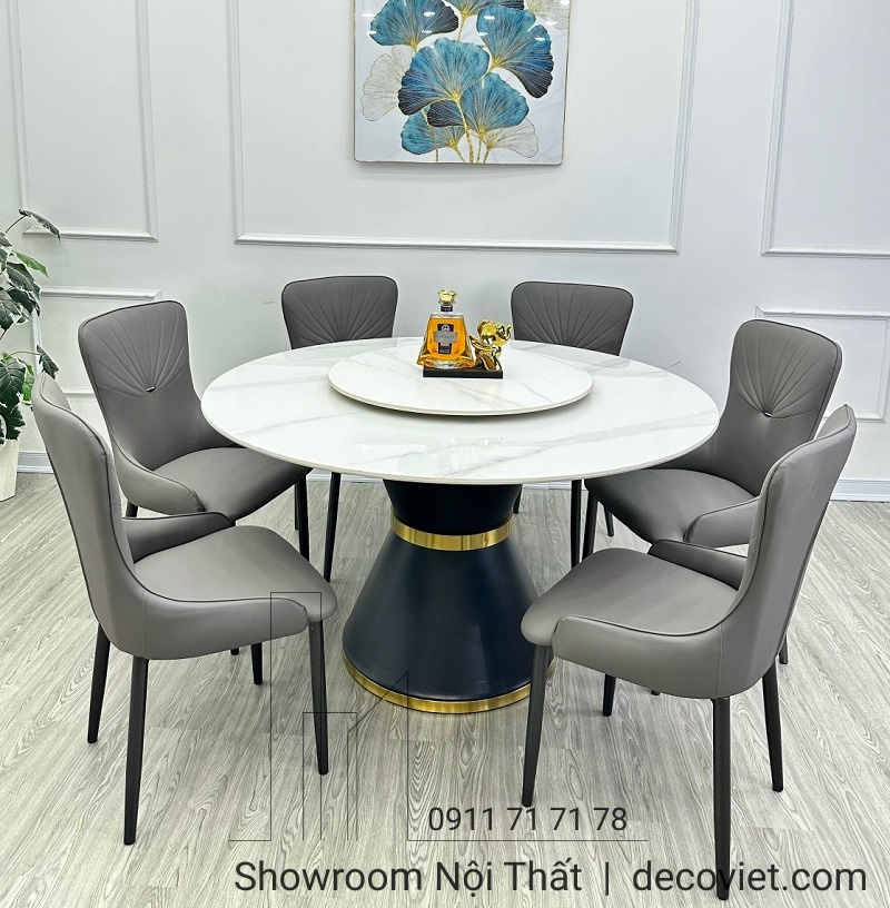 Bàn Tròn Xoay 6 Người 1765S | Bàn Ăn Tròn Mặt Đá 6 Ghế Hiện Đại!