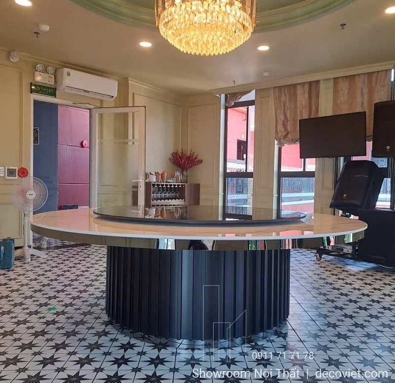 Không gian phòng ăn hay phòng tiệc của bạn sẽ trở nên sang trọng và ấn tượng hơn bao giờ hết với sự xuất hiện của Bàn Tròn Xoay Mặt Đá 2m4 2758S. Đây là mẫu bàn ăn tròn cao cấp được thiết kế dành riêng cho những không gian rộng như biệt thự, villa hay phòng VIP nhà hàng, khách sạn, phòng ăn công ty. Với mặt bàn đá cao cấp, sang trọng, khả năng chống thấm thấm ố tốt và dễ dàng vệ sinh. Bàn ăn tròn xoay lớn 2.4m không chỉ mang lại sự tiện nghi mà còn khẳng định đẳng cấp thẩm mỹ của gia chủ.