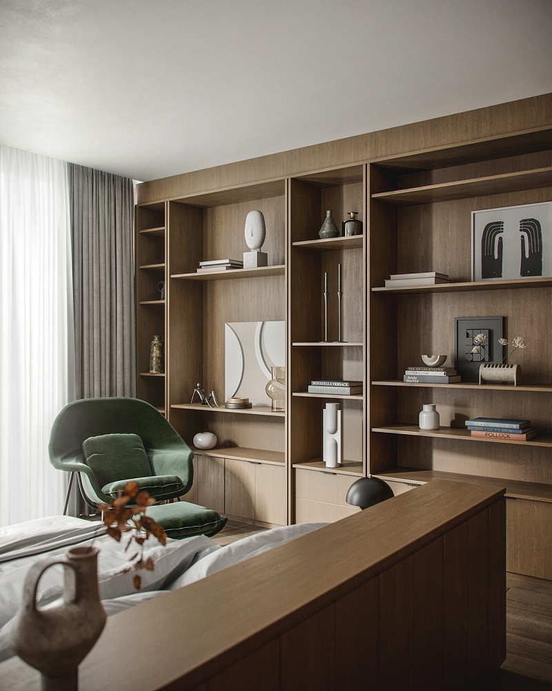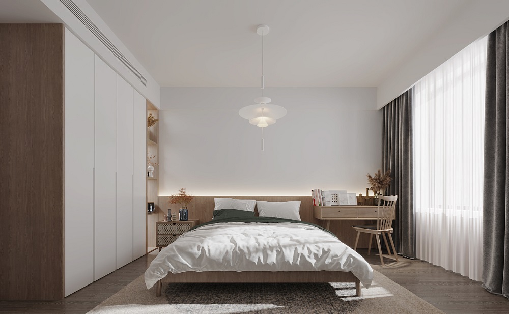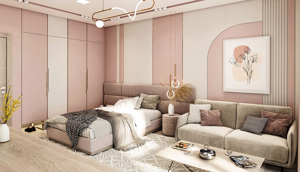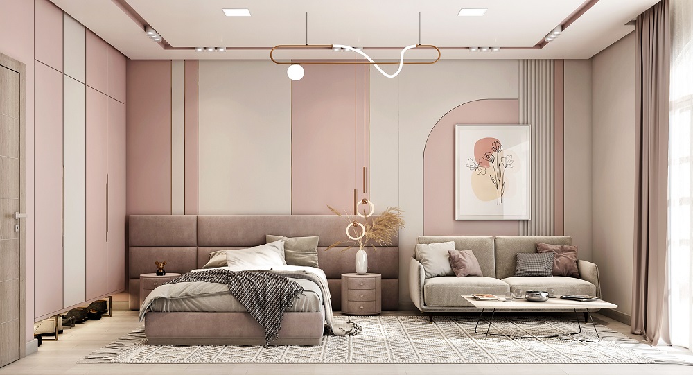 Trong phòng ngủ: Luôn chọn màu trung tính, trầm ấm để đảm bảo giấc ngủ tốt nhất. Có thể trang trí phòng theo sở thích riêng của mình bằng giấy dán tường, không nhất thiết giống hoàn toàn với không gian bên ngoài.