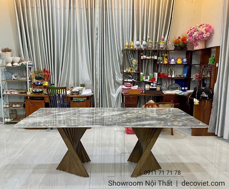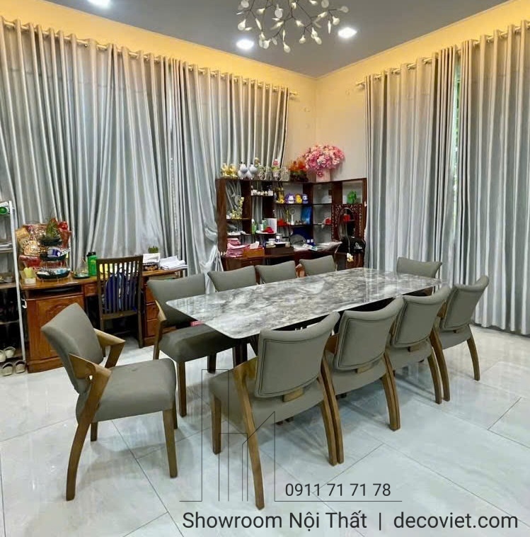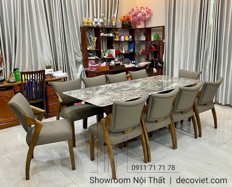 Bộ Bàn Ăn 10 Ghế Cao Cấp 2421S | Bàn Ăn Chân Gỗ Mặt Đá Tự Nhiên!
