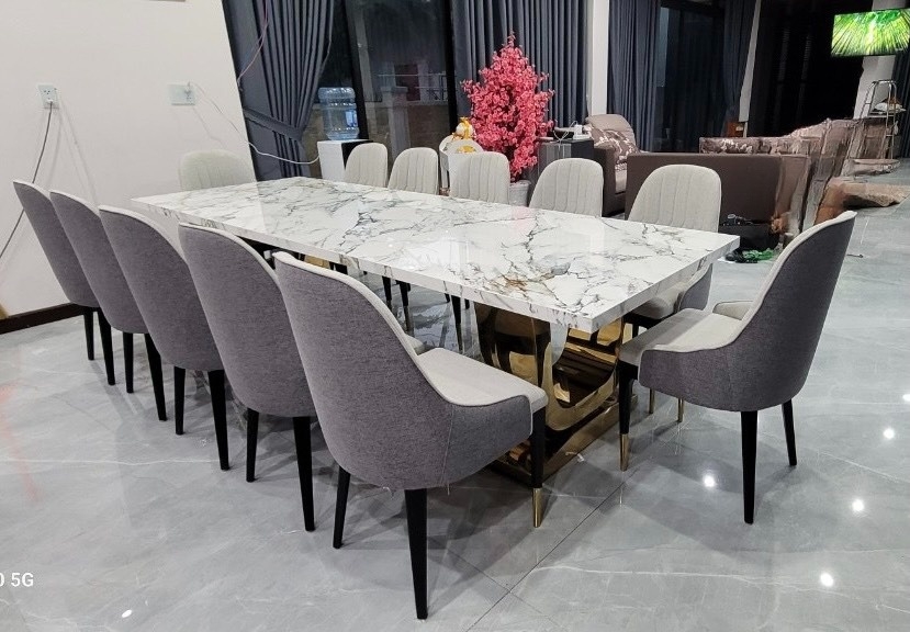 Bộ Bàn Ăn 12 Ghế 1283S | Bộ Bàn Ăn Mặt Đá Sang Trọng Cho Căn Bếp !