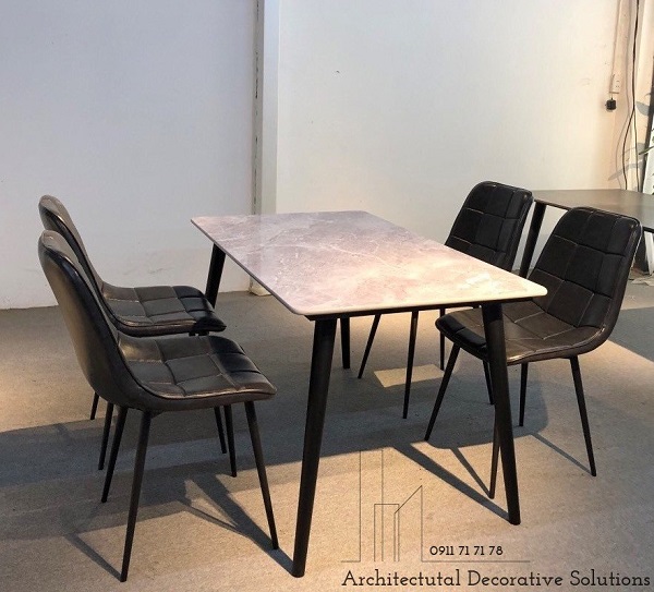 Bộ bàn ăn chân sắt mặt đá ceramic đen nhập khẩu cao cấp.