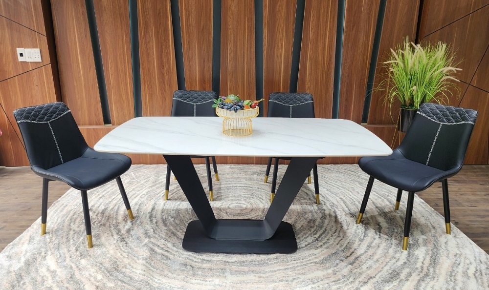 Bộ bàn ăn 4 ghế mặt đá giá rẻ là một trong những mẫu bàn ăn nhỏ với phong cách đơn giản và tinh tế. Các mẫu bàn ăn này được thiết kế bởi những nhà thiết kế hàng đầu, được ưa chuộng bởi sự hoàn hảo giữa phong cách hiện đại và chất liệu cao cấp. Bộ Bàn Ăn 4 Ghế Giá Rẻ 1258S với những đường vân đá độc đáo cùng với chân bàn cách điệu sang trọng sẽ làm cho không gian phòng bếp của bạn trở nên sống động và ấn tượng hơn.