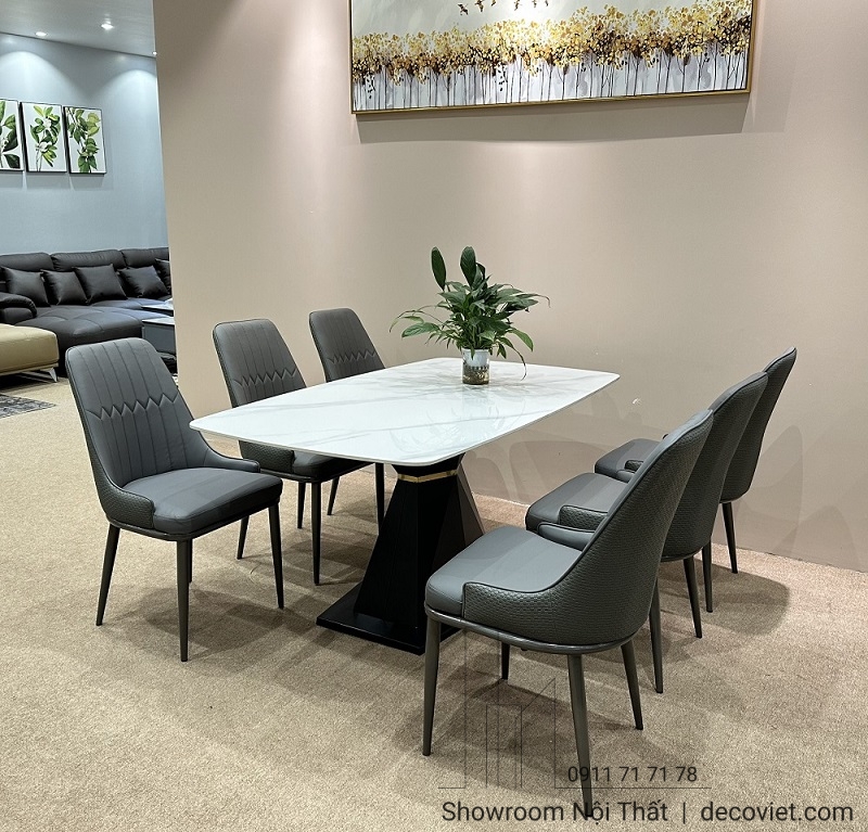 Từ trước đến nay, chúng ta đã quá quen thuộc với hình ảnh phòng ăn ấm cúng với bộ bàn ăn gỗ nâu trầm truyền thống. Những căn hộ hiện đại ngày nay ưa thích vẻ đẹp hiện đại, thích kiểu kết hợp nội thất mới lạ, tạo không gian nhẹ nhàng, sáng sủa. Bộ Bàn Ăn 6 Ghế 1187S của DecoViet với chất liệu mặt đá mang đến cho phòng ăn nhà bạn một "làn gió mới", giúp không gian sang trọng và tinh tế hơn.