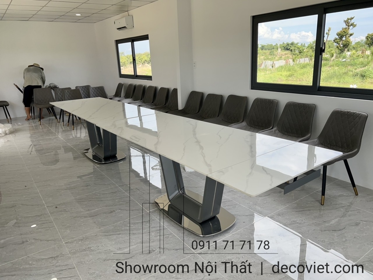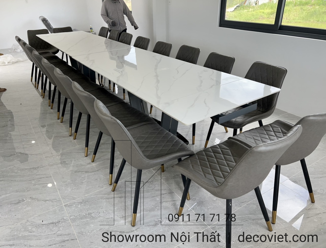 Bộ Bàn Ăn Mặt Đá 20 Ghế Cao Cấp 1344S - Bàn Ăn Kéo Dài Nhập Khẩu!