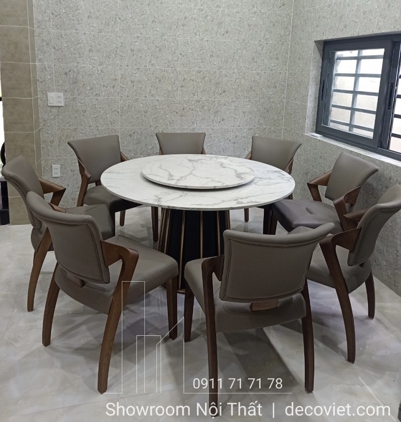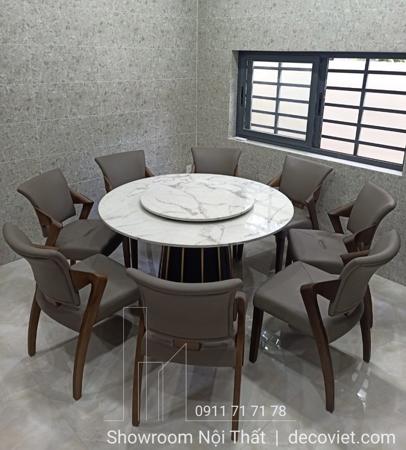 Bộ Bàn Ăn Tròn 8 Ghế 1300S | Bàn Ăn Tròn Xoay Mặt Đá Hiện Đại!