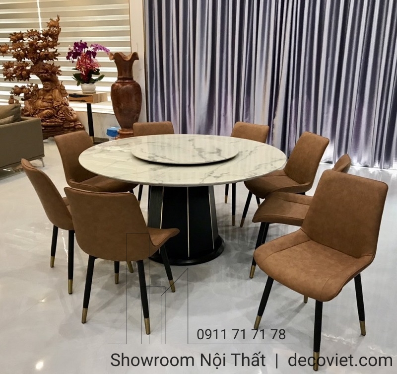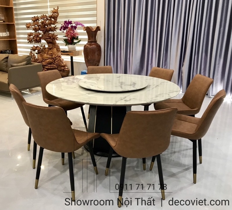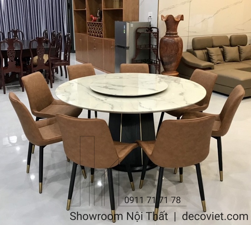 Bộ Bàn Ăn Tròn 8 Ghế 1397S | Bàn Ăn Tròn Xoay Mặt Đá Hiện Đại!