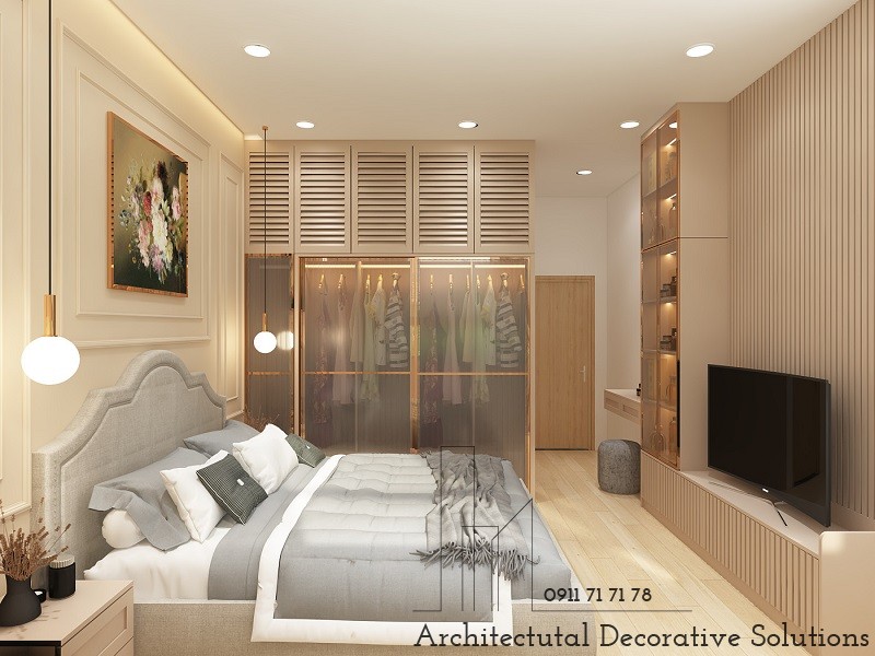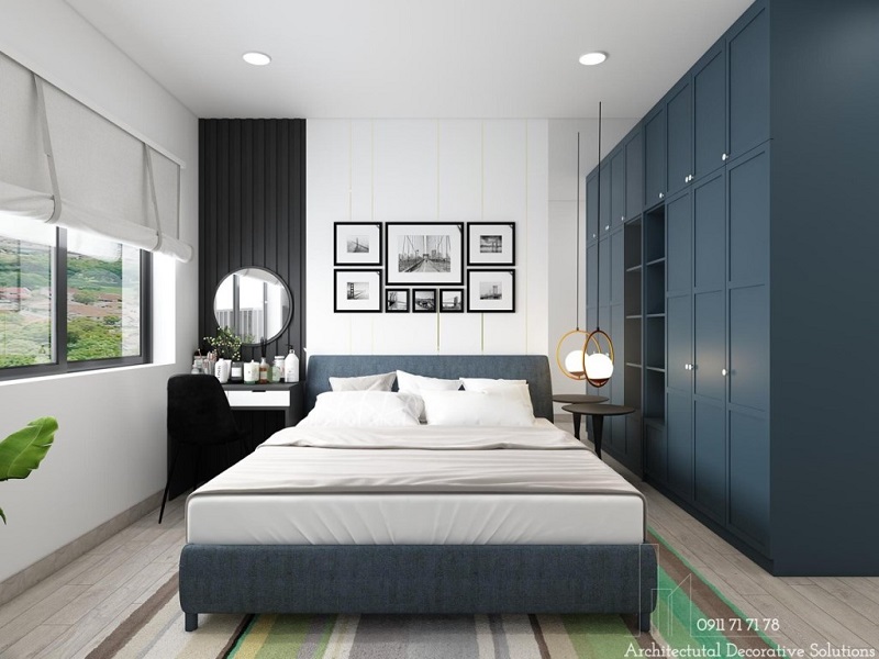 Trước kia, trong phòng ngủ, tủ quần áo chỉ là vật dụng đồ gỗ thông thường. Tuy nhiên, theo phong cách hiện đại với những căn phòng có diện tích đủ lớn. Rất nhiều gia chủ đã bố trí phòng thay đổi riêng để thay thế tủ quần áo mang đến sự thông thoáng cho không gian căn phòng. Tủ quần áo đơn thuần cũng mang nhiều tính chất là trang trí nên về hình thức, chưa hẳn phải là điểm nhấn của không gian nội thất phòng ngủ. Do đó, chỉ cần bố trí vuông vắn làm sao cho hợp lý là được.
