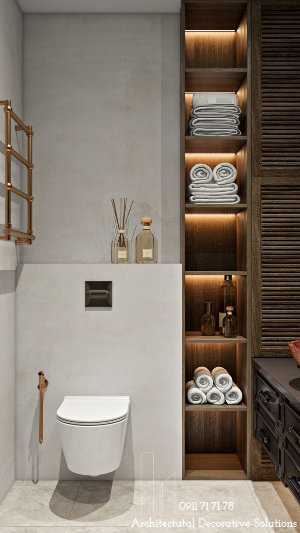 Sự sáng tạo trong kết cấu đến màu sắc đã tạo nên một không gian tắm hiện đại, sang chảnh và lôi cuốn.